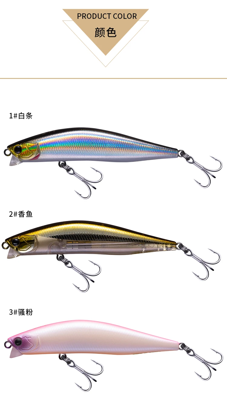 Optimize the size of the tongue plate and the size of the bait body, and the more streamlined bait body makes it have stronger wind breaking performance and effectively increase the throwing distance.