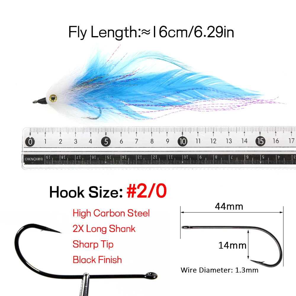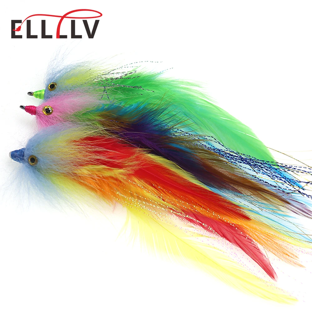 Elllv 2 шт. Красочные #2/0 морской Стример Летать большая игра трубка мух стальная голова лосось окунь Щука искусственная приманка для рыбалки приманка