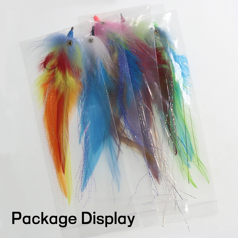 -Завязывание рыболовного крючка из углеродистой стали с искусственным пером, красивое и натуральное. Яркие цвета привлекают внимание рыбы.