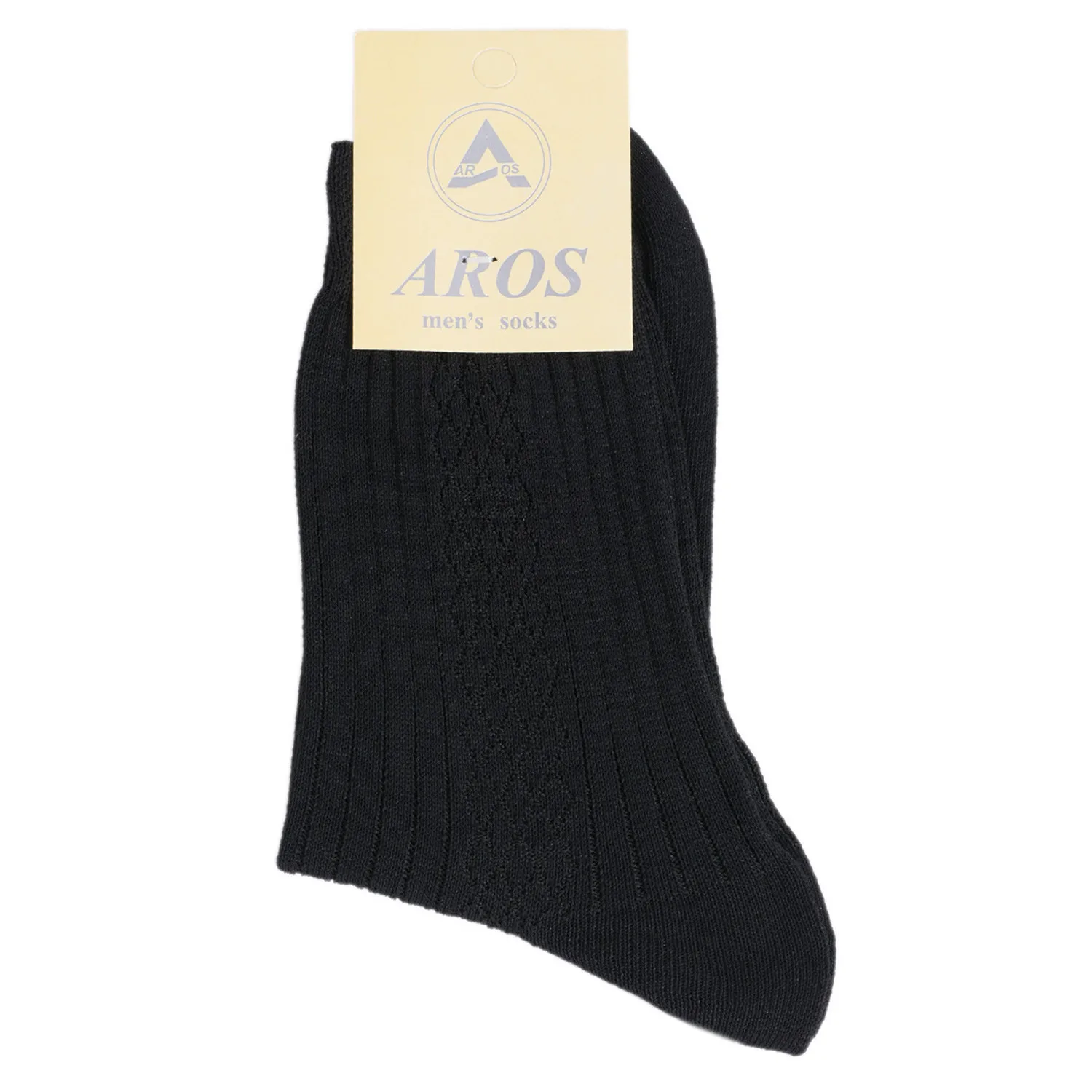 В комплект входит 10 пар мужских однотонных черных носков AROS с индивидуальными фабричными этикетками. Произведены на российской фабрике в г. Санкт-Петербург. Необычная вязка с узорами.