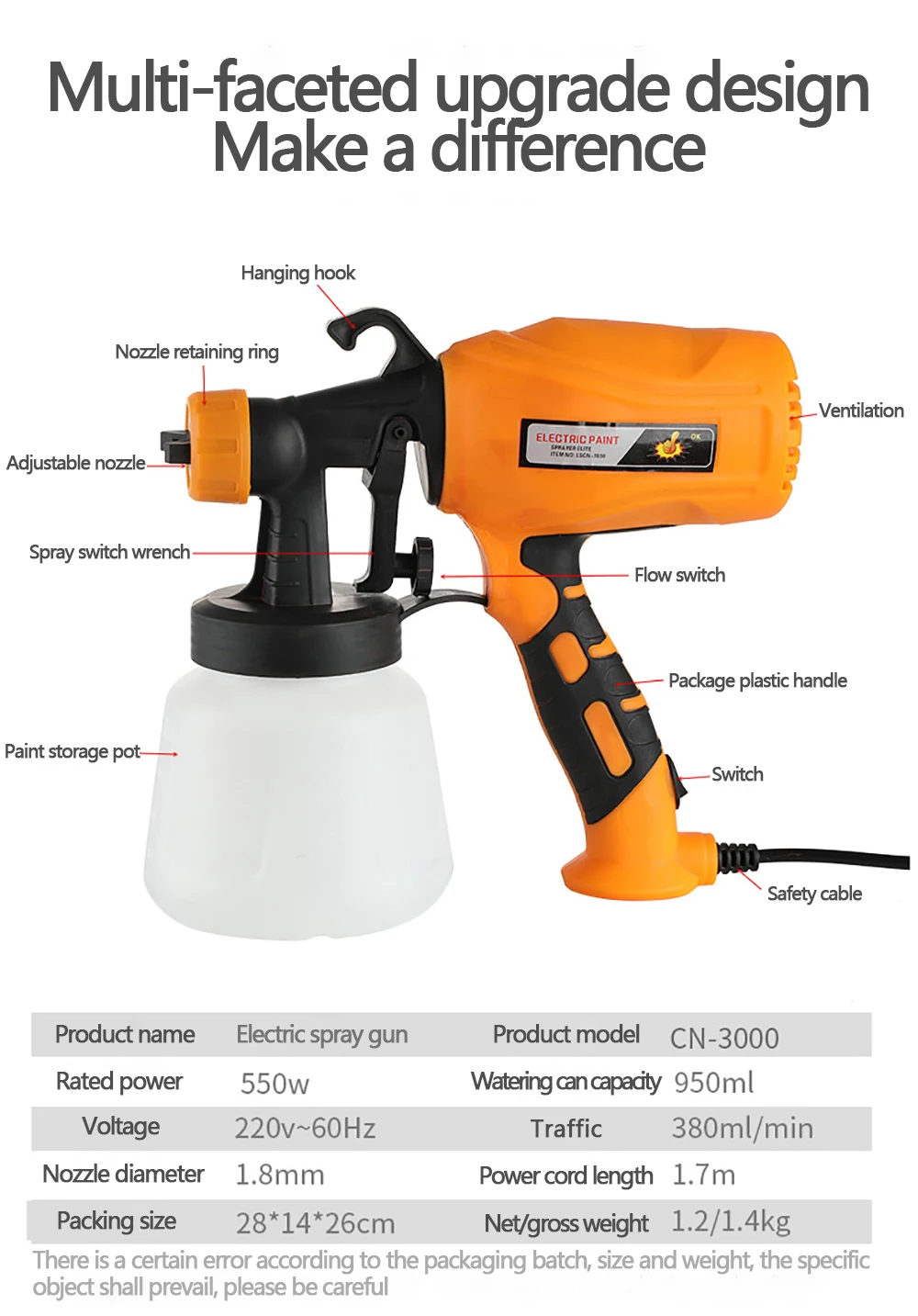 Пистолет распылитель краски 2 5 мм пистолет высокой мощности 650 Вт 220 В 800 мл для