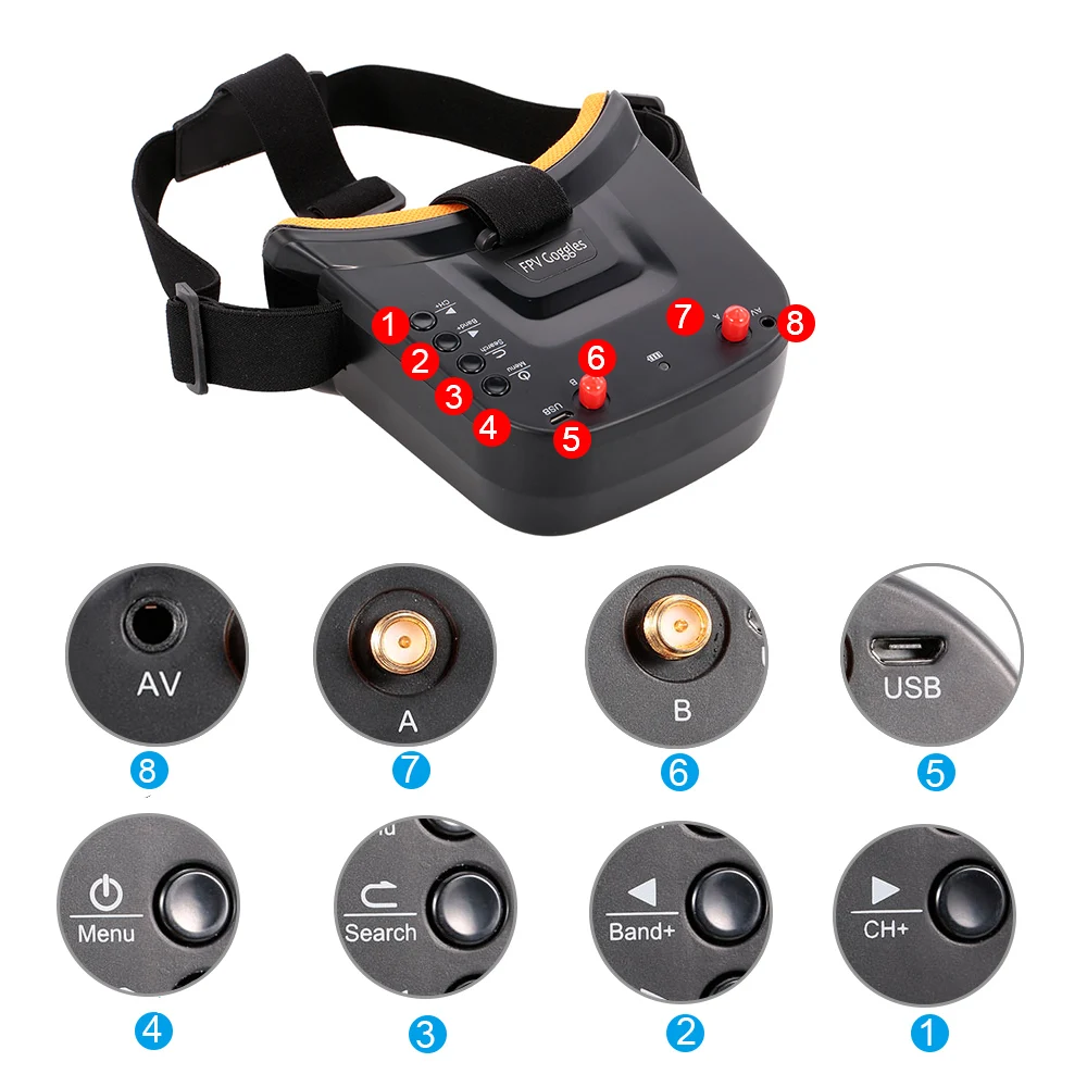 1.This FPV Goggles comes with 4.3 inch 480 * 272px HD high-brightness LCD