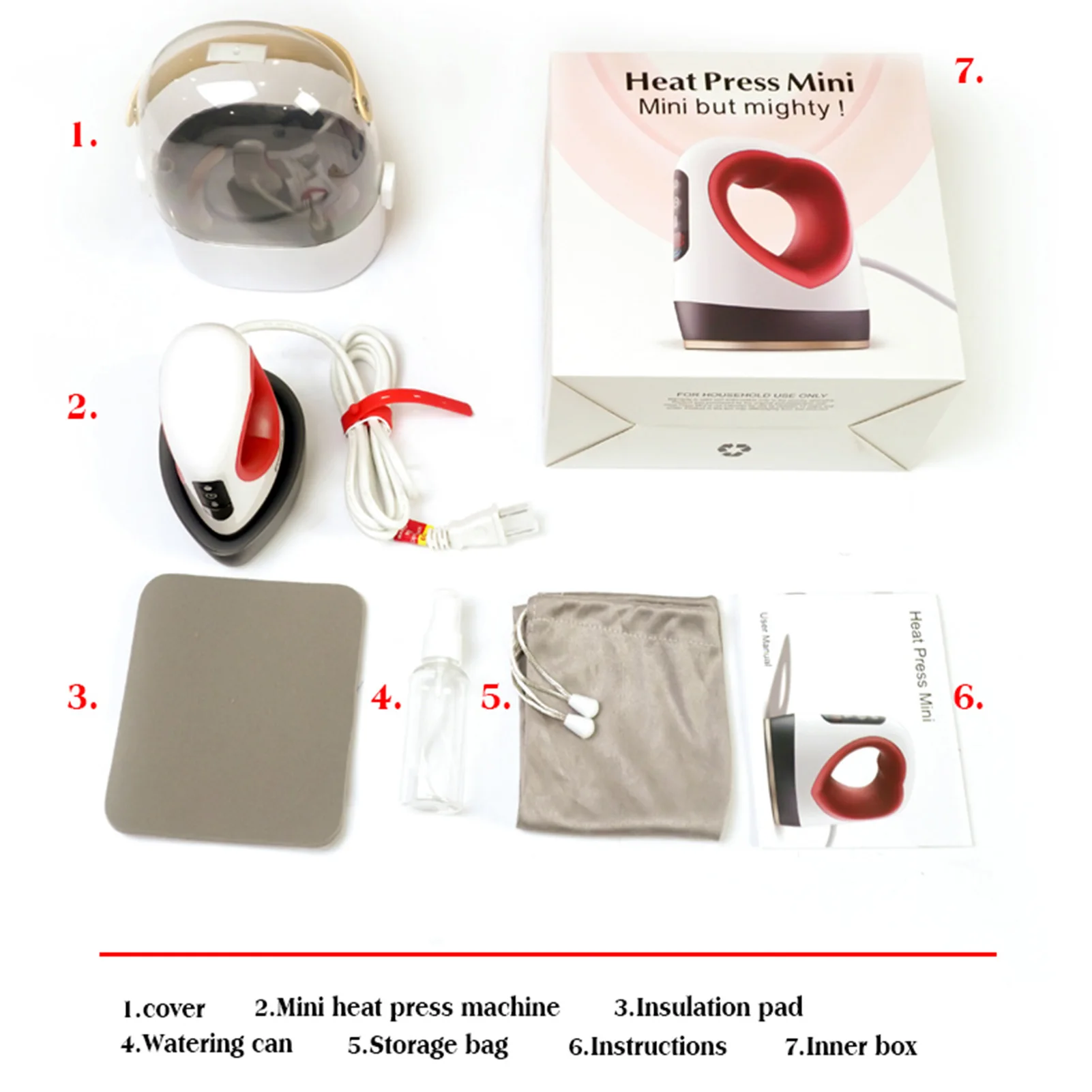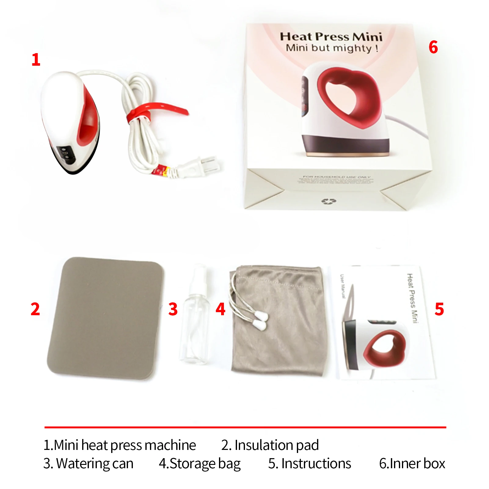 Мини-термопресс: очень маленький и легко носить с собой. С сумкой для хранения и коробкой, его можно использовать как дорожную сумку, удобно носить с собой.