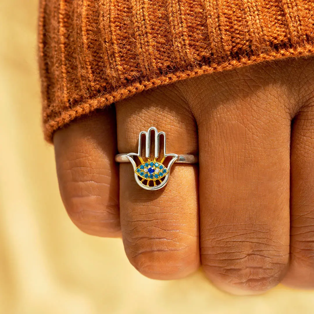 ❤【DESIGN】This Hamsa ring Good Luck and health for Women, Is hased on the evil eye mentioned in ancient greek literatures as well as the comon hamsa amulet, the fatima's hand resists evil eyes and provides mysterious power, symbolizes guarding, blocking all Bad things and bringing good luck.