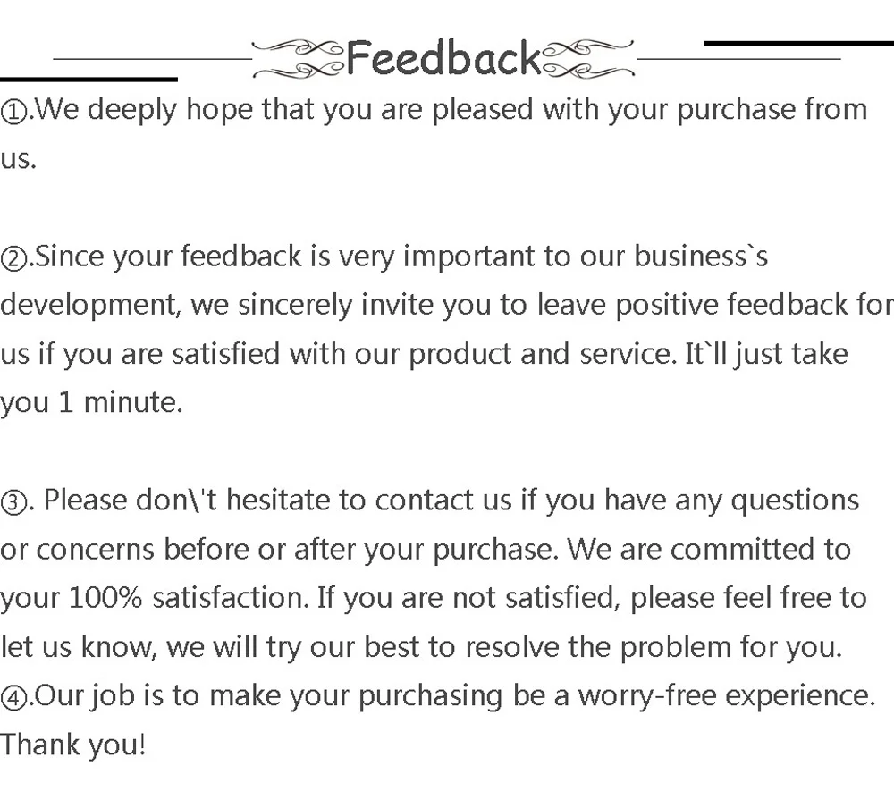 1. Мы являемся фабричным поставщиком, и мы онлайн в течение 24 часов. Поэтому, если у вас есть какие-либо вопросы по стилю, размеру, цвету, доставке и т. д., пожалуйста, дайте нам знать, мы ответим вам в первый раз.