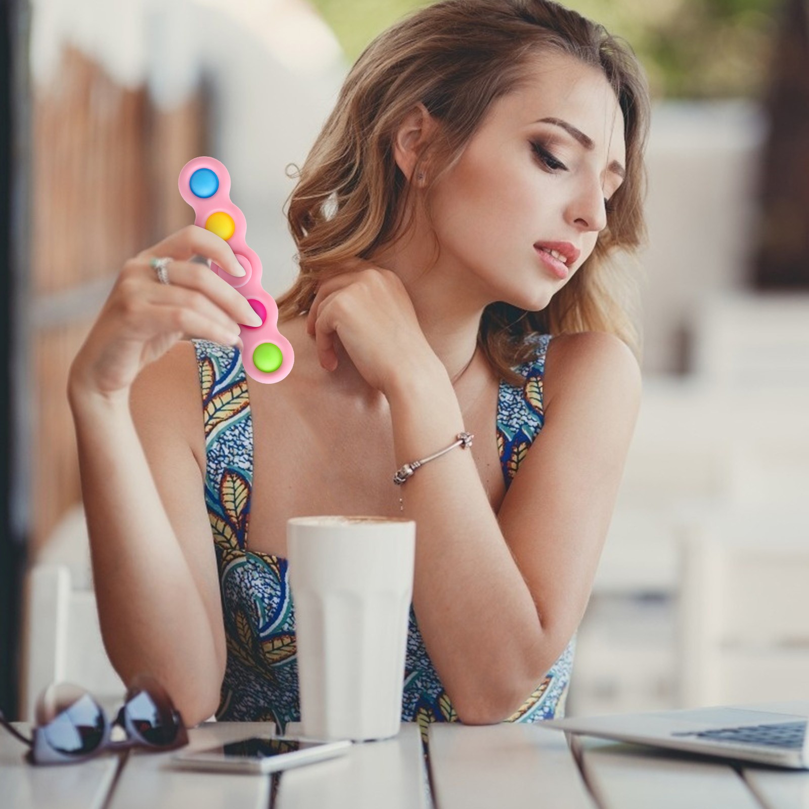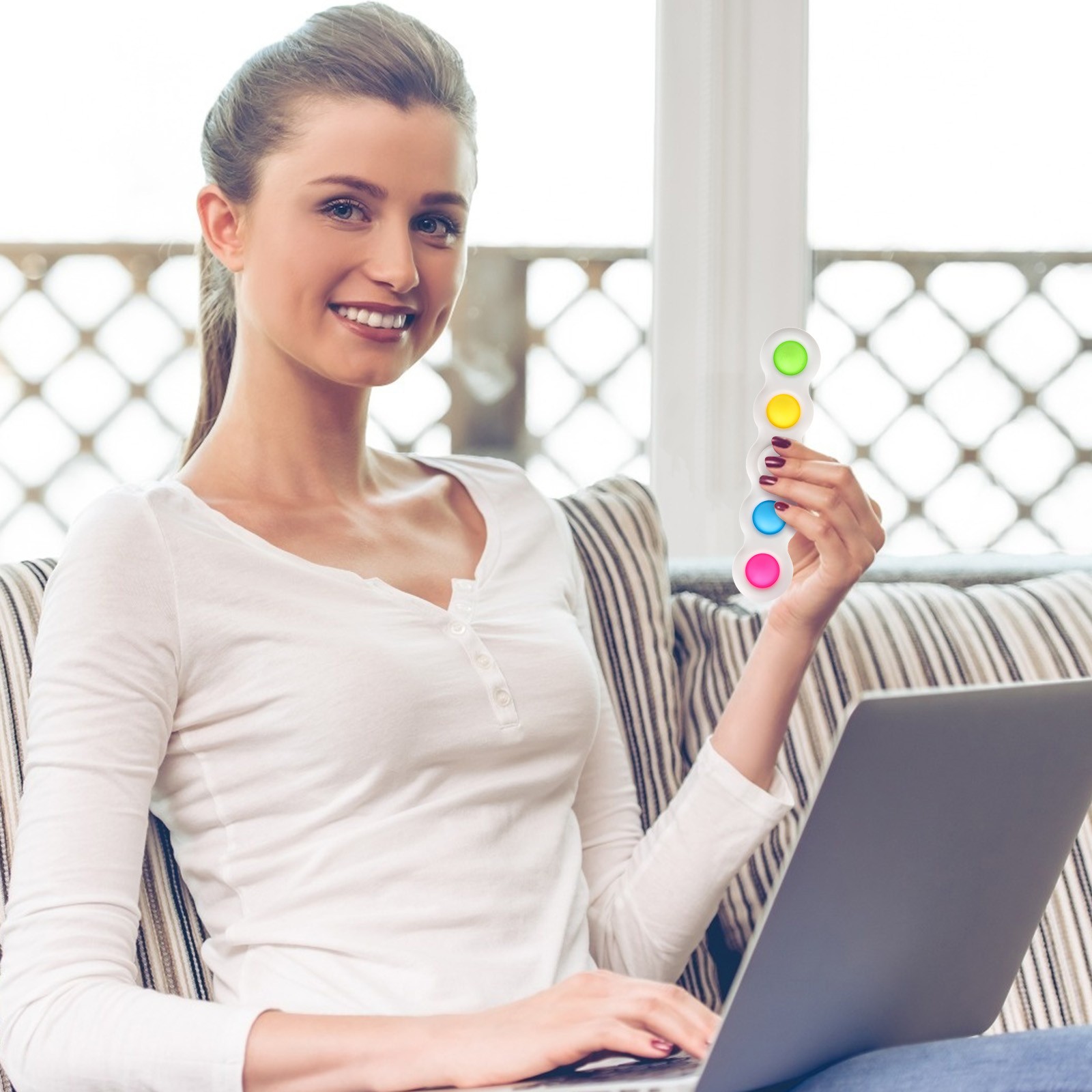 - Как использовать его: просто нажмите на пузырьки вниз и сделайте легкий прыгающий звук; Затем поверните и начните сначала. Многоразовые и моющиеся.