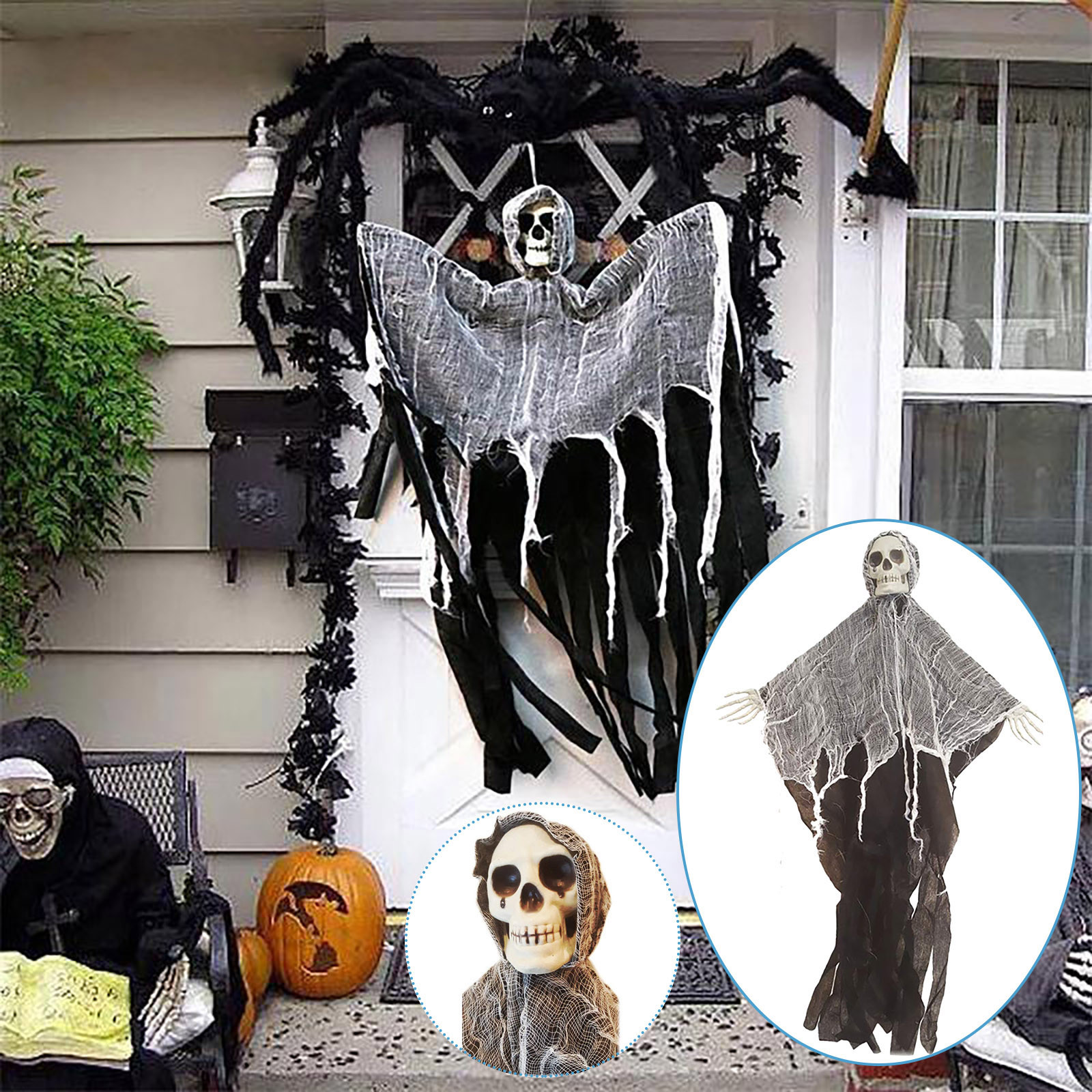 3.Best Halloween decorations: very suitable for Halloween party decorations, scary indoor and outdoor gauze skull ghost decorations for Halloween and Christmas parties.