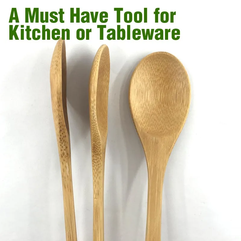Wooden Bamboo Solid Spoon Set 10inch Soup Spoon Flat Handle Cooking Mixing Stirring Kitchen Tool Natural Tableware