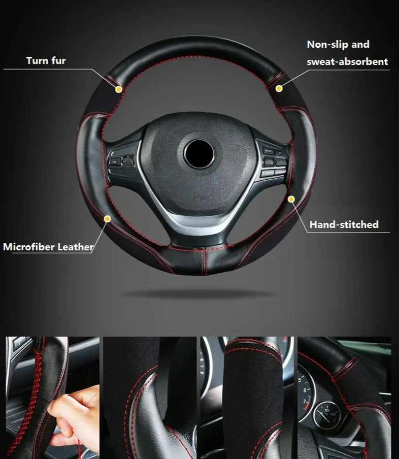 38 см микрофибра кожаный чехол рулевого колеса автомобиля четыре сезона универсальный износостойкий Противоскользящий пояс рукоделие автозапчасти