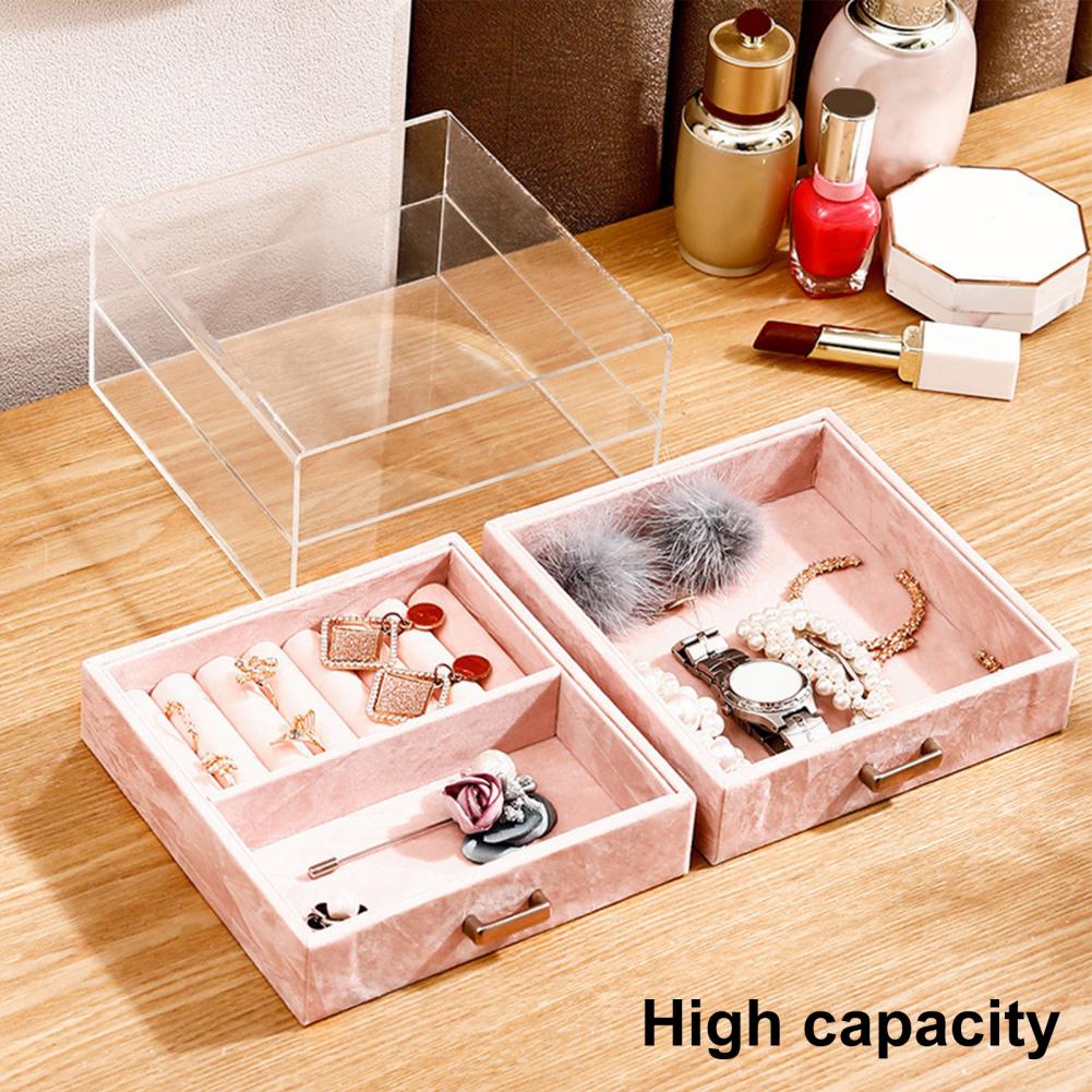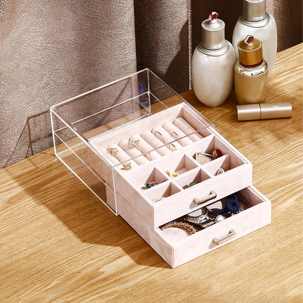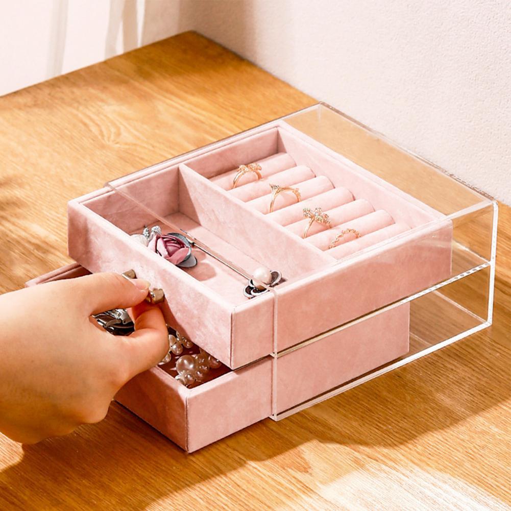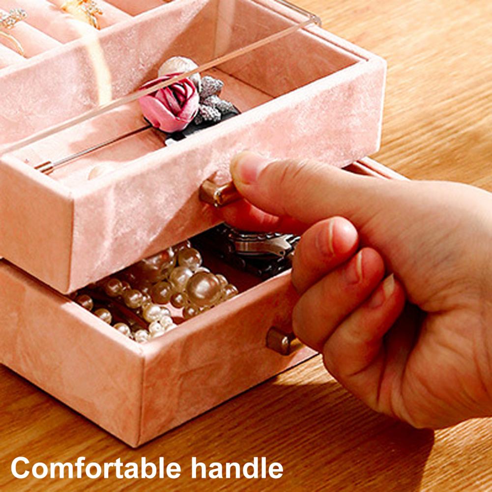 What this jewelry display box can offer you is that it has a double drawer design to help you store more jewelry, keeping your dresser organized, and making it easy to find the jewelry you need.