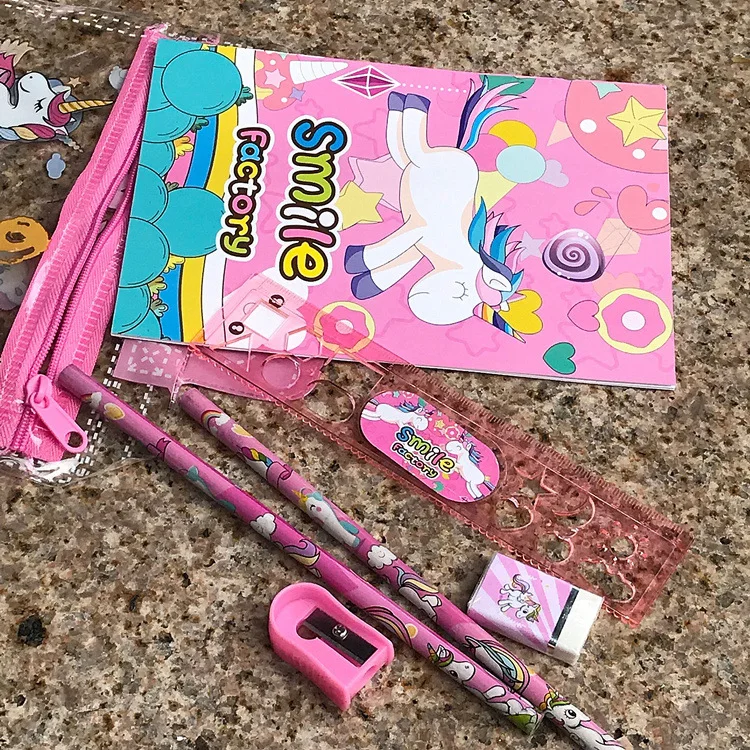 В комплекте: 1 Сумочка, 2 карандаша, 1 точилка, 1 ластик, 1 линейка, 1 блокнот
