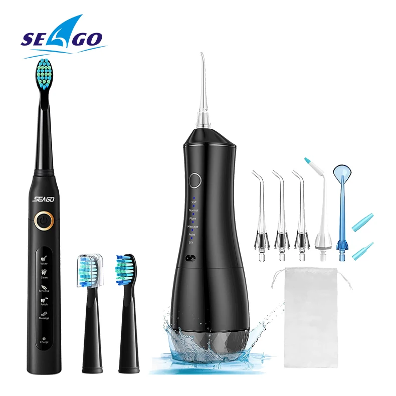 Seago Sonic электрическая зубная щетка SG507B для взрослых, 2 минуты, таймер, щетка, зарядка через USB, электронная сменная зубная щетка, головки, подарок