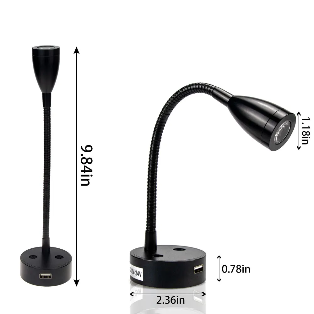 RV лодка светодиодный светильник для чтения 3 Вт с регулируемой яркостью гибкий гусиная шея настенный светильник для грузовика, дома, яхты кабина с USB зарядным портом
