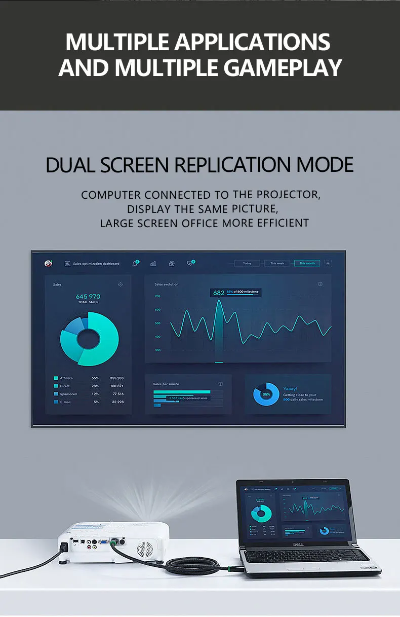 3. 【Производительность】 Пропускная способность 48 Гбит/с, поддержка 8K @ 60 Гц, 30 Гц; 5K @ 120 Гц, 100 Гц, 60 Гц; 4K @ 120 Гц, 100 Гц, 60 Гц; 1080P @ 240 Гц, 120 Гц, 100 Гц, 60 Гц; 3D видение