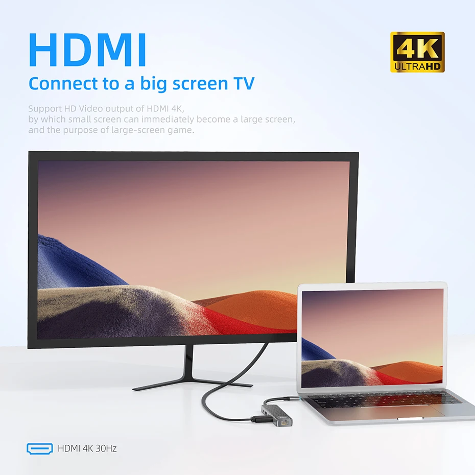 4. Поддержка разрешения 4K 30Hz; USB-C гнездо поддерживает данные s