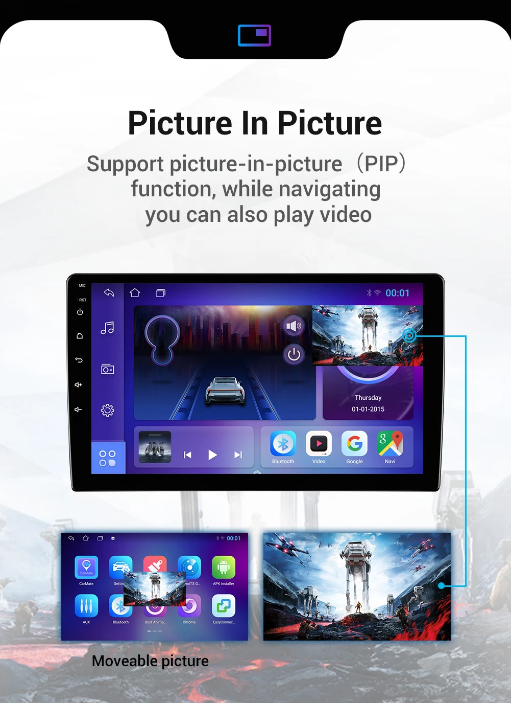 Он поддерживает управление рулевым колесом (или вы можете выбрать пульт дистанционного управления Bluetooth)