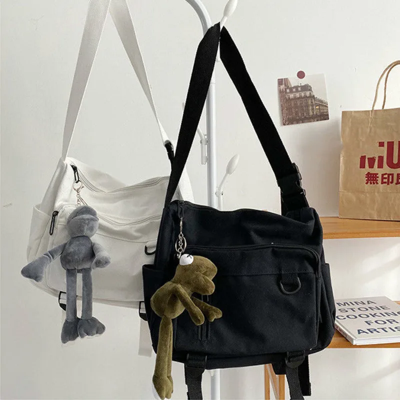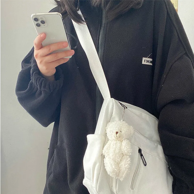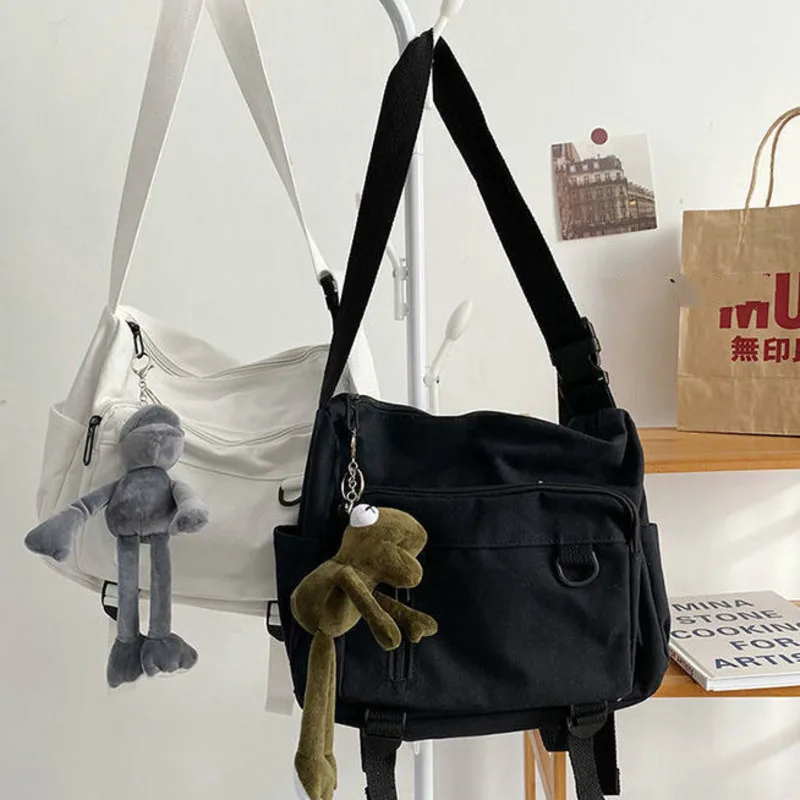 Вместительная Студенческая однотонная сумка для путешествий с милым кулоном