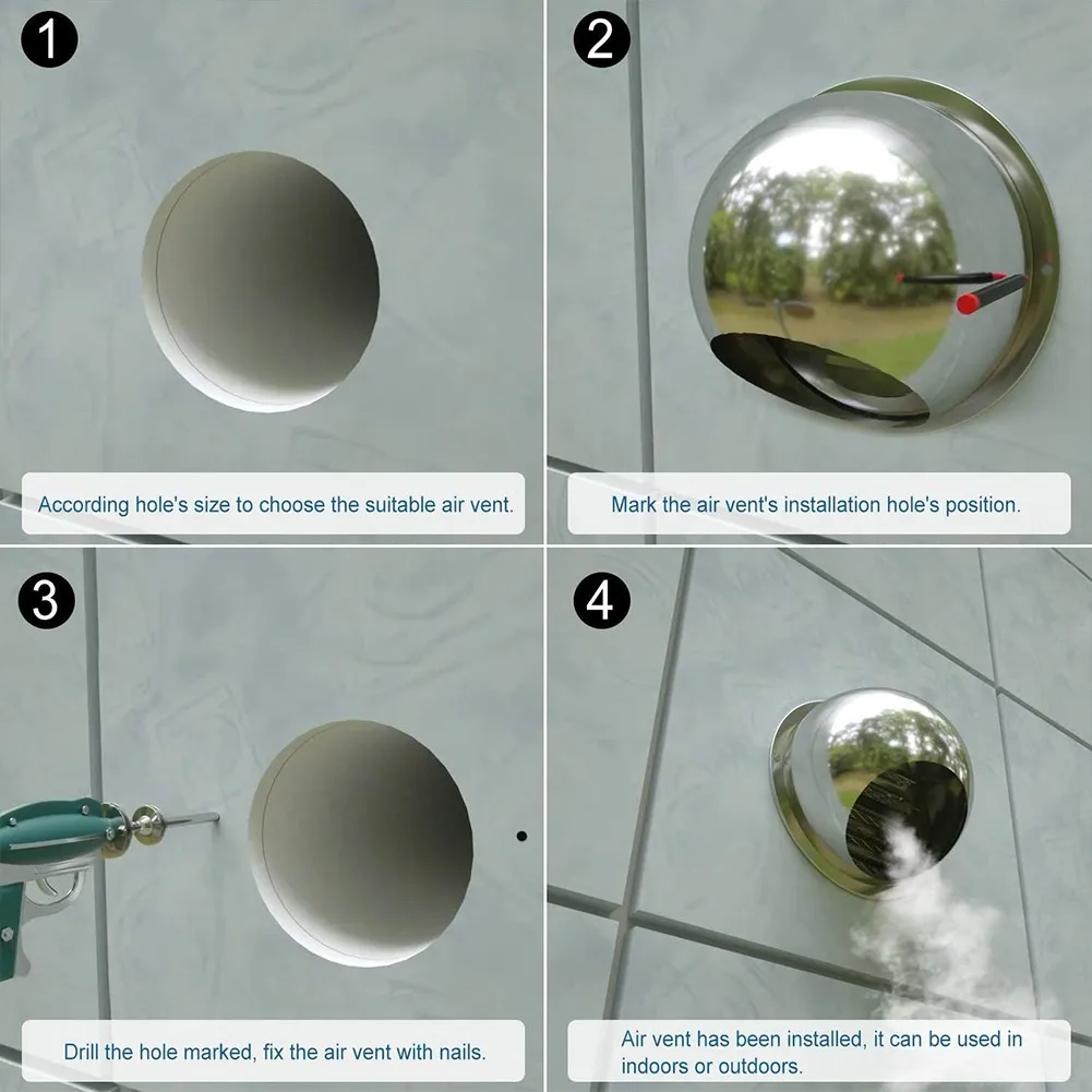 * Совершенно новый нержавеющий стальной настенное отверстие для носа с решеткой для защиты от насекомых, жалюзи, фиксаторы, фиксаторы и уплотнения.