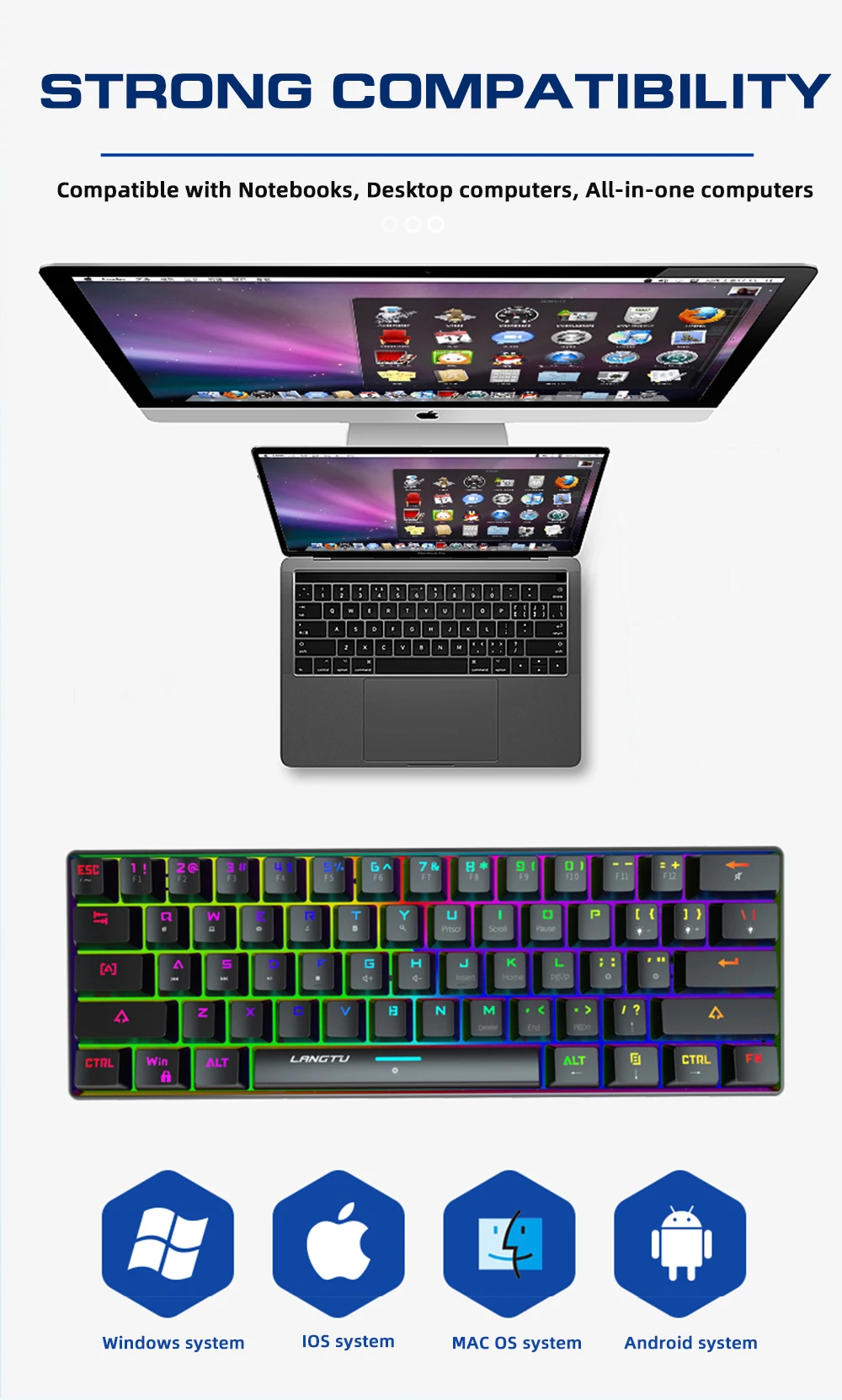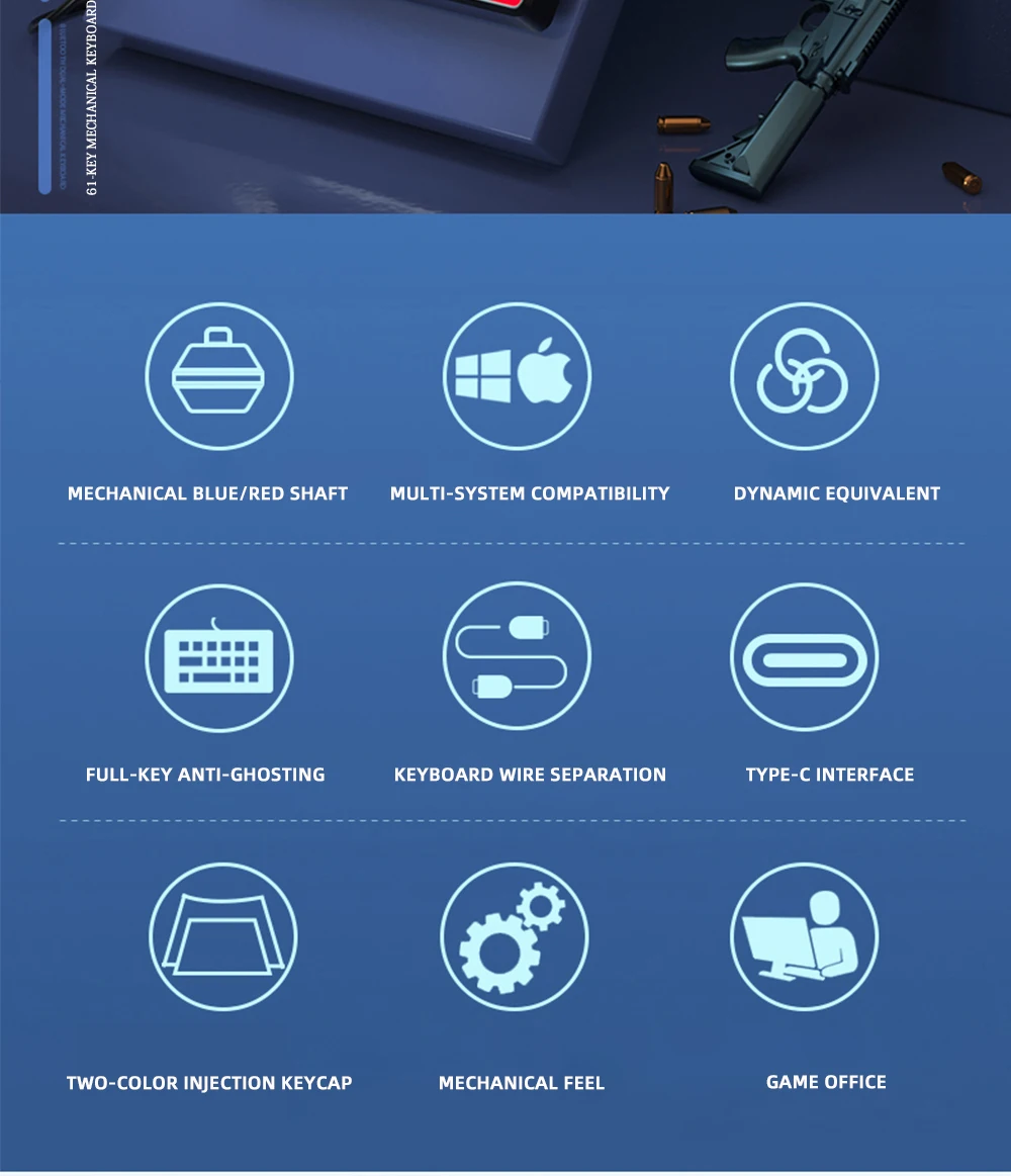 Оригинальная Механическая игровая клавиатура GK61 с 61 клавишей USB Проводная светодиодный эргономичная клавиатура с разноцветной подсветкой для ноутбука, компьютера, геймера