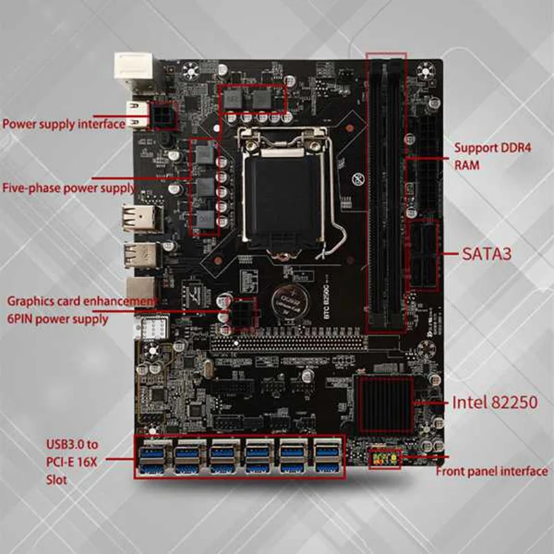 B250C BTC Mining материнская плата с охлаждающим вентилятором процессора + кабель переключения 12XPCIE до USB3.0 слот GPU LGA1151 поддерживает DDR4 DIMM RAM