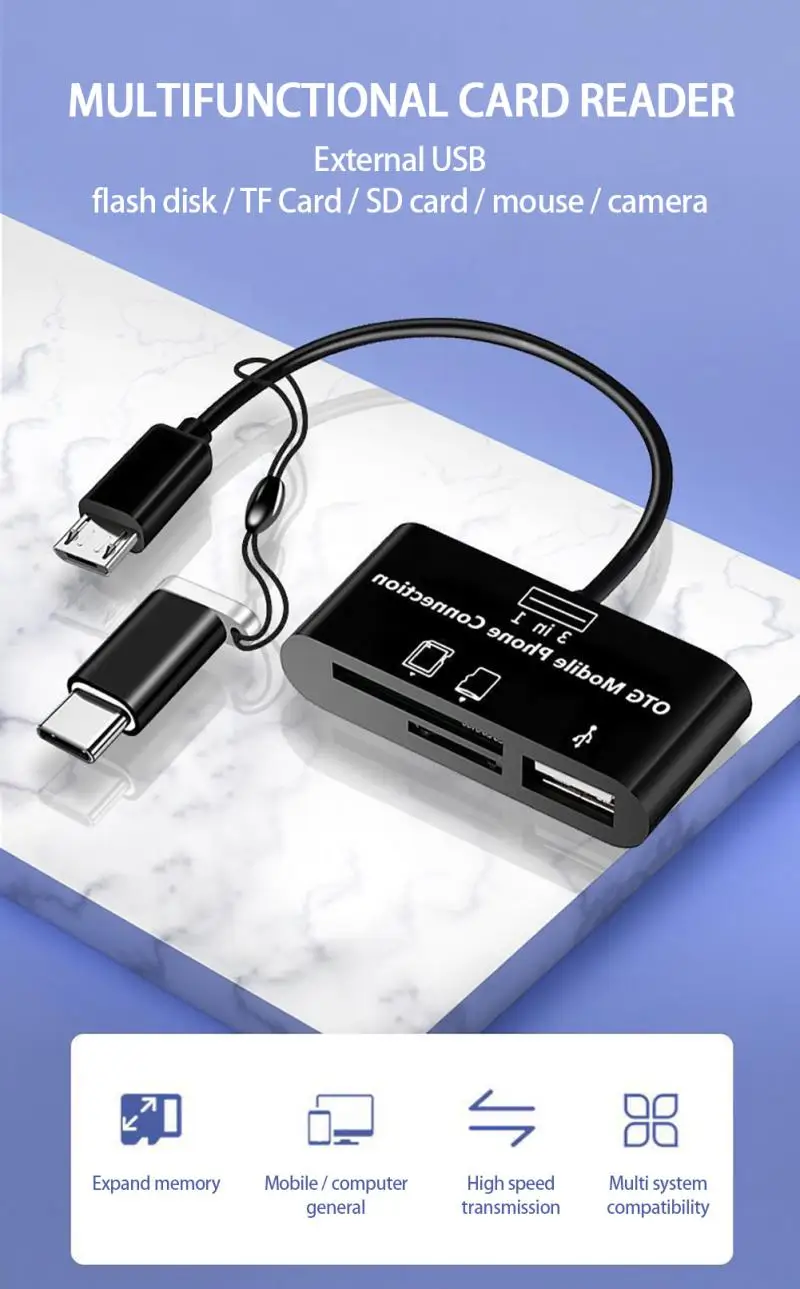 Двойной слот для карт TF/SD, usb-интерфейс, быстрое чтение и запись