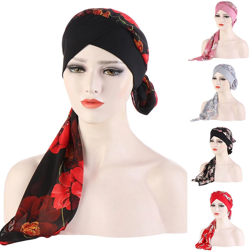 Аксессуары ceitsop шарф шляпа с принтом шифон длинный хвост Баотоу шляпа с принтом тюрбан шляпа крест лоб Баотоу Кепка пуловер Кепка