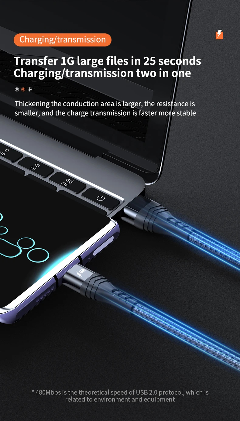 6A 66W USB Type C Cable PD Fast Charger Cord For Huawei Mate 40 Pro 5A Type-c Cable For Xiaomi POCO X3 M3 Samsung OPPO 1/2/3M