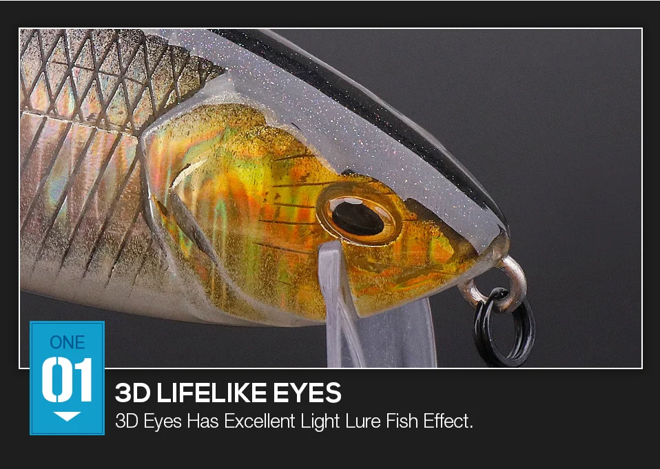 1. Хорошо спроектирован и сделан:3D жизни как рыбий глаз с 2-сегментов реалистичный составной корпус обеспечивает отличный внешний вид приманки для рыбалки. Тела части подключения с железной пряжкой позволяет этой приманки Wiggles из стороны в сторону, как настоящая рыба будет плавать.