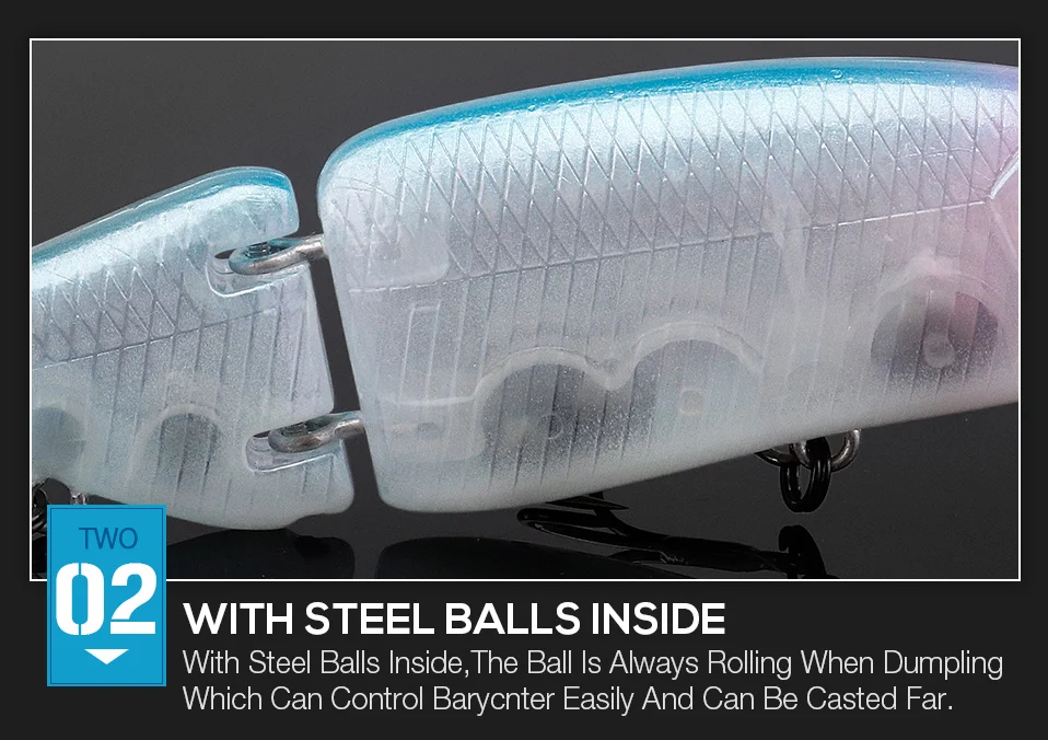3. Общая структура:Внутренняя структура использует стальной шар для балансировки проводимости. Когда вы берете леску, шар в корпусе передается на другие части и издает звук, который может погонять рыбу. Форма изготовлена из углеродистой стали с 2 супер острыми тройными крючками для обеспечения того, чтобы рыба не ускользнула. Эти приманки идеально подходят для захвата морских и пресноводных видов.