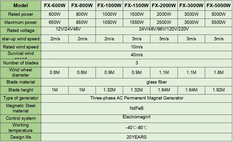 5. Эффективный диапазон скорости ветра. Особый принцип управления израсходованные скорость ветра до 2,5 ~ 25 м/с, использует ветер ресурс эффективно и получает более высокий уровень мощности.