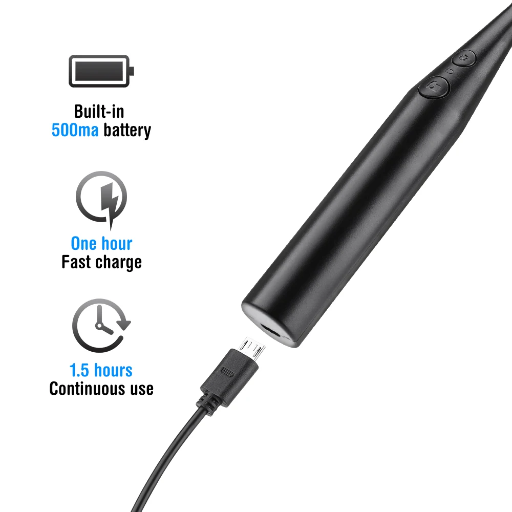 4. Встроенный 500ma, аккумулятор, быстрая зарядка в течение одного часа, время работы от аккумулятора 1,5 часов, используйте в течение одной минуты, на каждый день, может поддерживать трех месяцев без подзарядки.