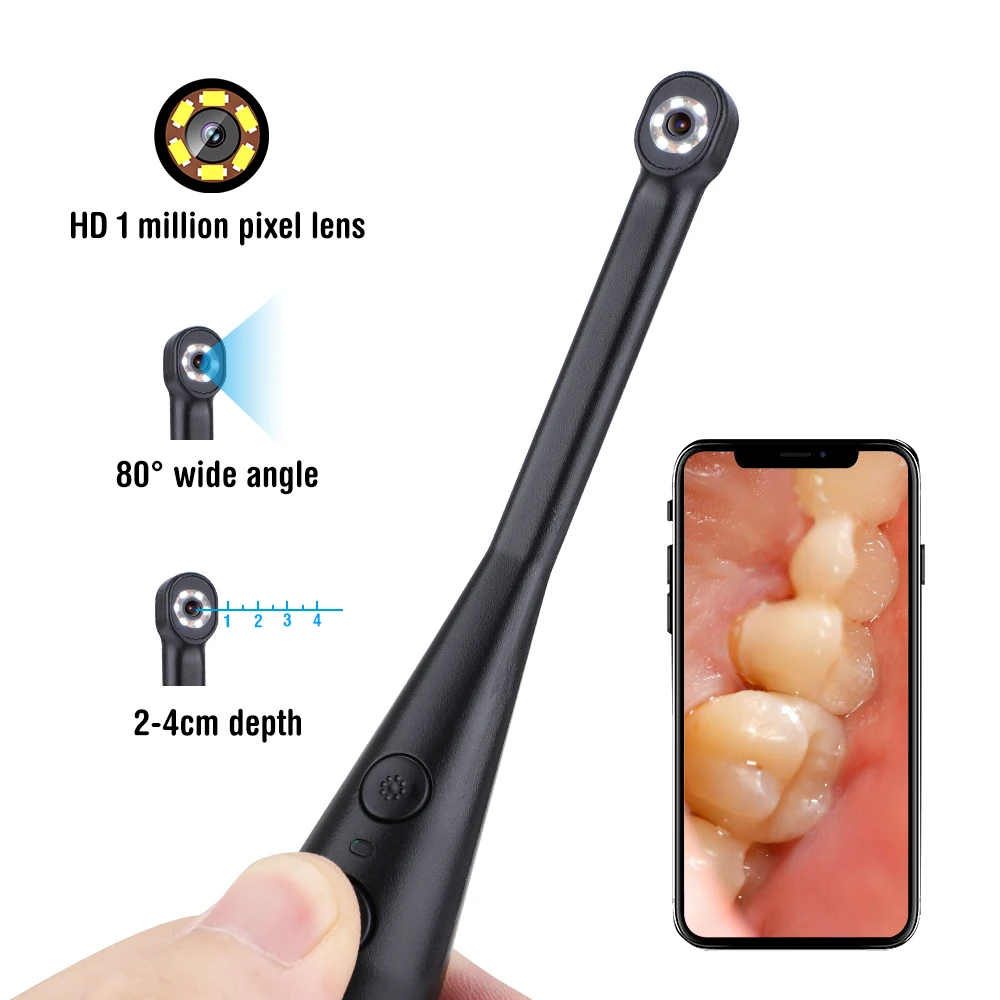 2. Объектив высокой четкости 1 миллион пикселей, широкоугольный угол 80 °, глубина 2-4 см, изображение более четкое, что позволяет легко просматривать внутреннюю часть полости рта.