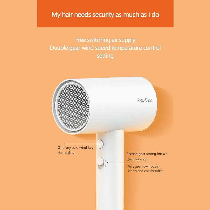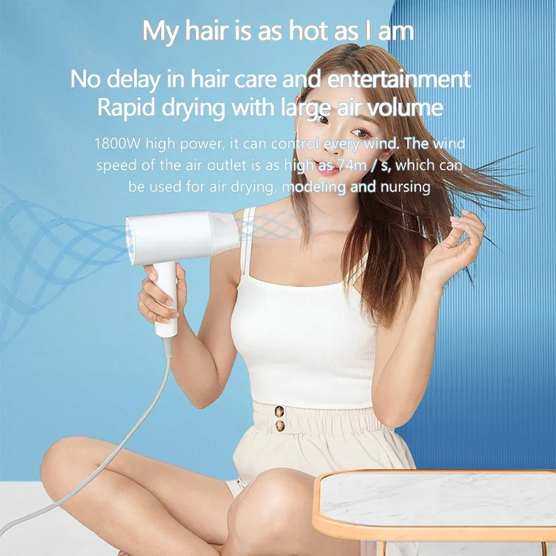 Высокая мощность 1800 Вт, она может контролировать каждый ветер. Скорость ветра на выходе воздуха составляет 74 м/с, который используется для сушки воздуха, моделирования и ухода за ребенком
