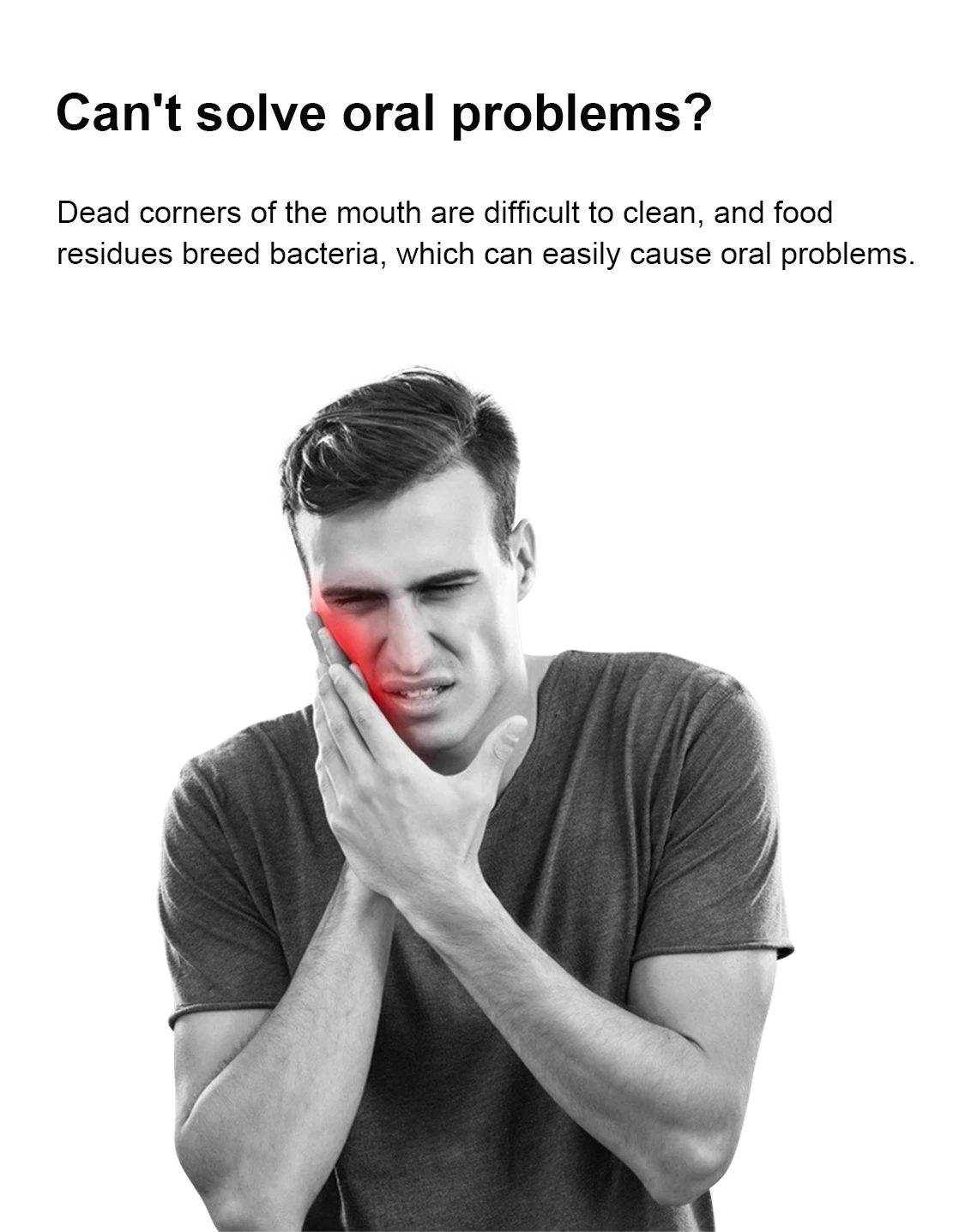 Мертвые углы рта трудно очистить, и остатки пищи размножают бактерии, которые могут легко вызвать проблемы с полостью рта.
