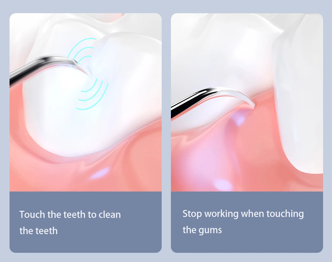 Он перестанет работать, когда коснется десен или мягких предметов.