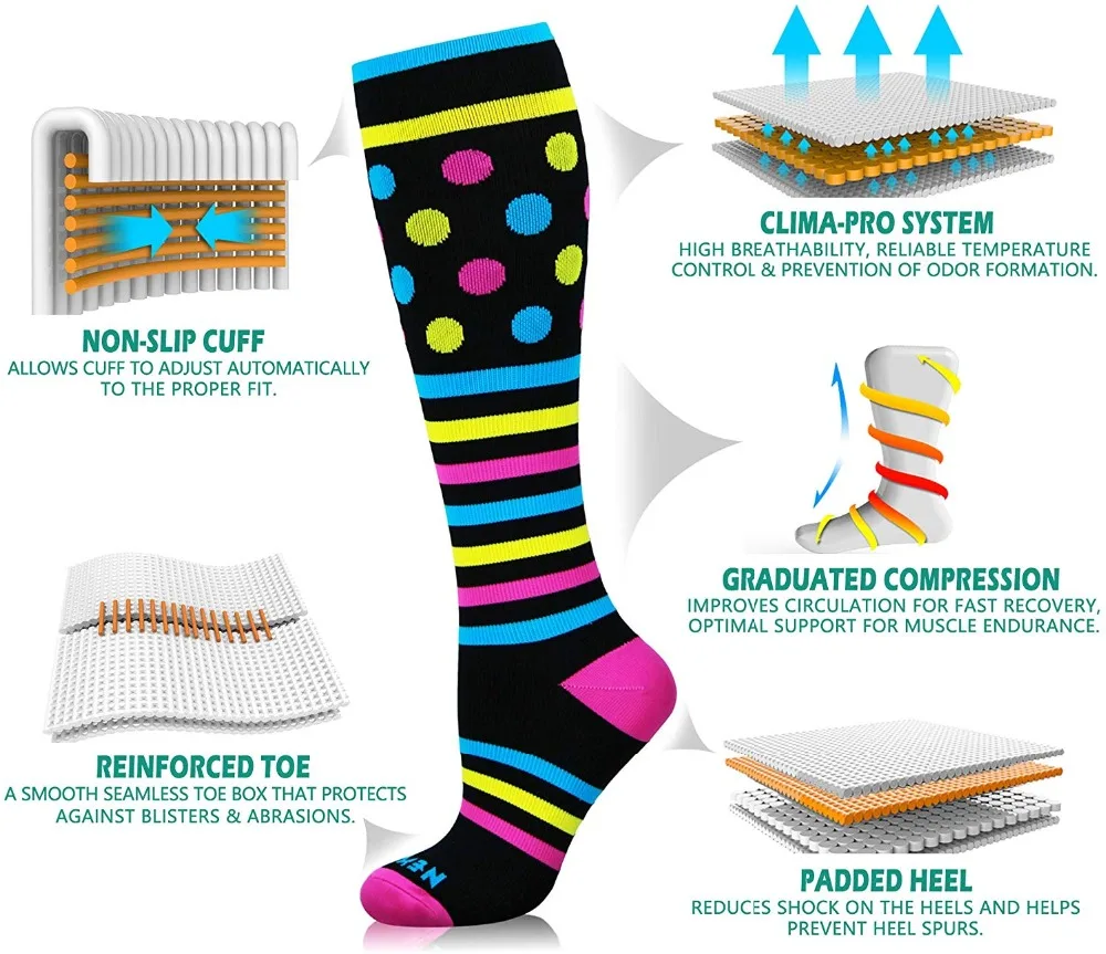 Для спортсменов на выносливость ключевым механизмом является «икроночный мышечный насос»-с каждым шагом или педальным ударом, сжимающий и разжимающий телячьи мышцы сдавливает кровь обратно к сердцу. Наши компрессионные носки обеспечивают дополнительное сжатие, которое усиливает это действие накачки, ускоряя поток очень необходимого кислорода для работы мышц. Ускоряет кровообращение к сердцу и избавляет от метаболических отходов от мышц.
