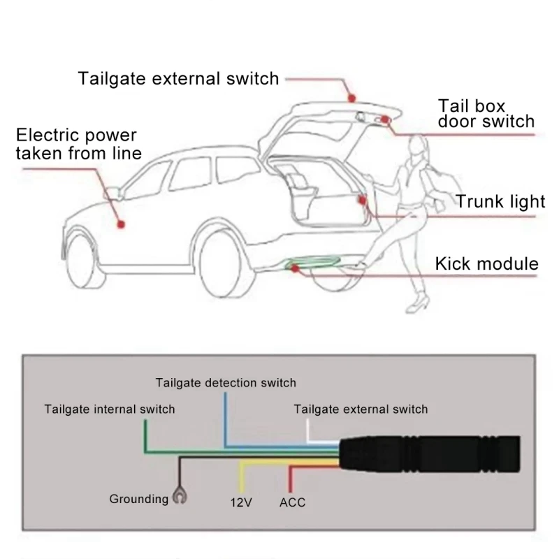 Автомобильный одноногий автоматический багажник Boot Kick Sensor Электрический Смарт-переключатель багажника для автомобильного багажника датчик открывания багажника В настоящее время большинство автомобильных стволов на рынке должны быть открыты ключом или ручной кнопкой. Когда владелец держит большой предмет в багажнике, он должен разместить изделие на земле, а затем открыть багажник вручную, что неудобно в эксплуатации.