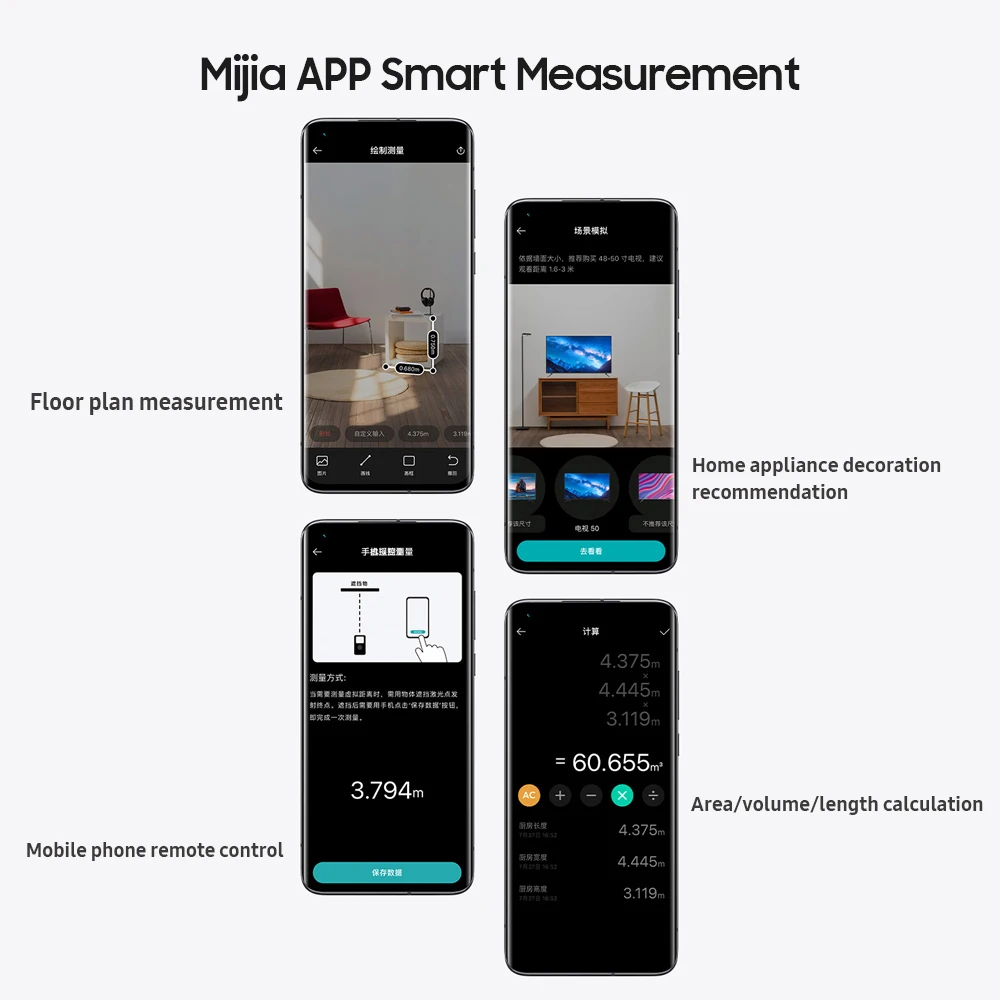 Xiaomi Mijia Smart La-ser Измерительный Цифровой измеритель диаметра в реальном времени диапазон площади/объема/длины вычисление Высокоточный дальномер Портативный Инфракрасный измерительный прибор