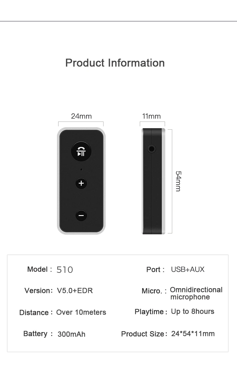 2. Встроенный аккумулятор 300 мАч, поддерживает 8 часов воспроизведения музыки, больше не нужно беспокоиться о батарее;