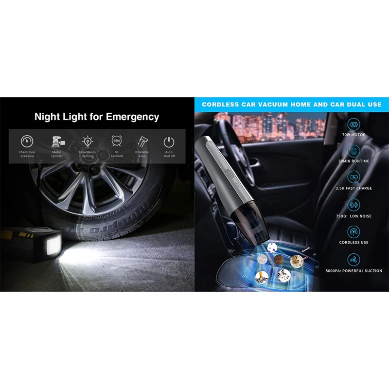 1 комплект 5000PA беспроводной ручной пылесос и 1 комплект Воздушный компрессор насос для шин