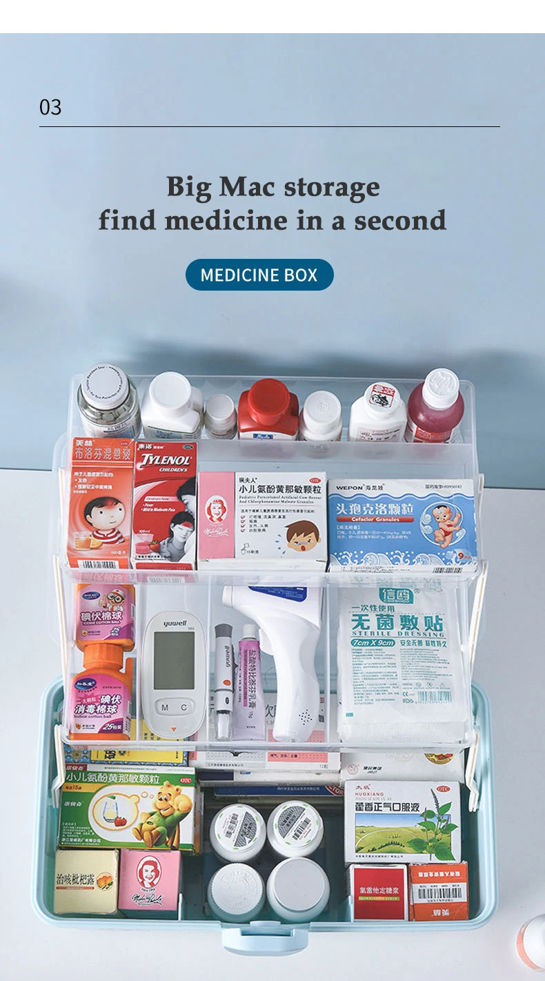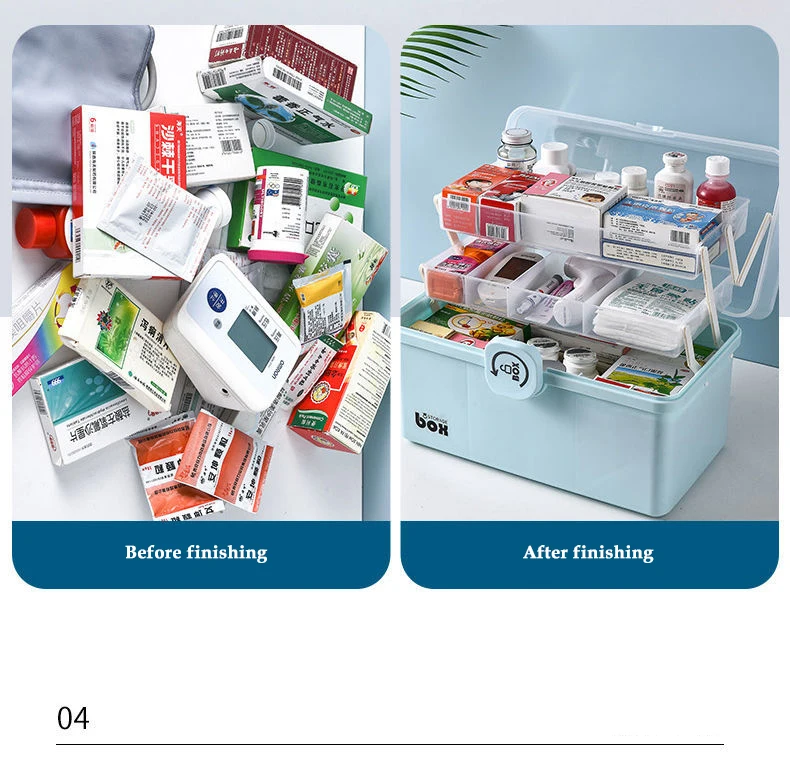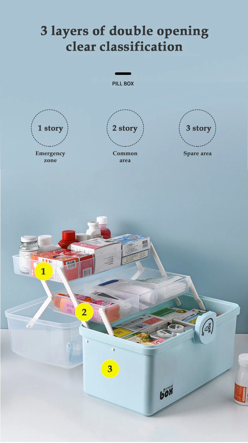 4. Безопасный дизайн: Этот ручной ящик для хранения лекарств оснащен прочным уплотнением для защиты детей.