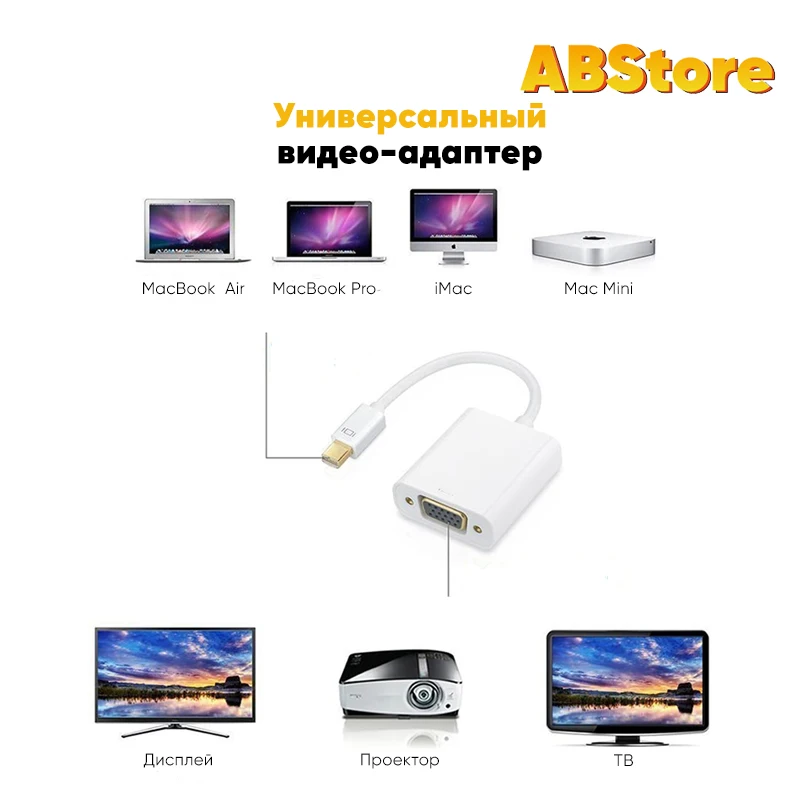 Кабель-переходник Mini DisplayPort папа разъем - VGA мама разъем, предназначенный для совмещения ноутбуков и персональных компьютеров, оборудованных выходом Mini DisplayPort, с мониторами, телевизорами и другими устройствами с входом VGA.