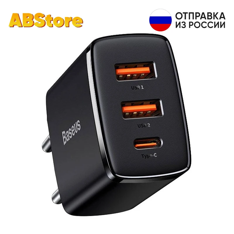 Зарядное устройство Baseus 1xType C + 2xUSB-A 30W 5V 3A.