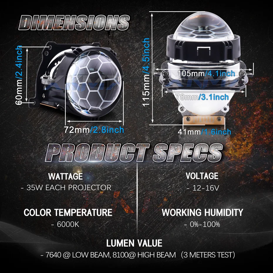Размер линзы:2,8 дюймов, подходит для большинства автомобильных фар.