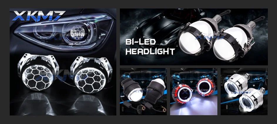 Это новейший комплект xkm7 BI-LED с таможенным травлением сотовых линз, который добавит более стильный и привлекательный дизайн вашим фарам