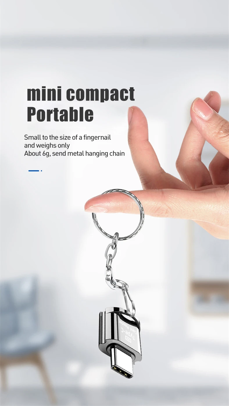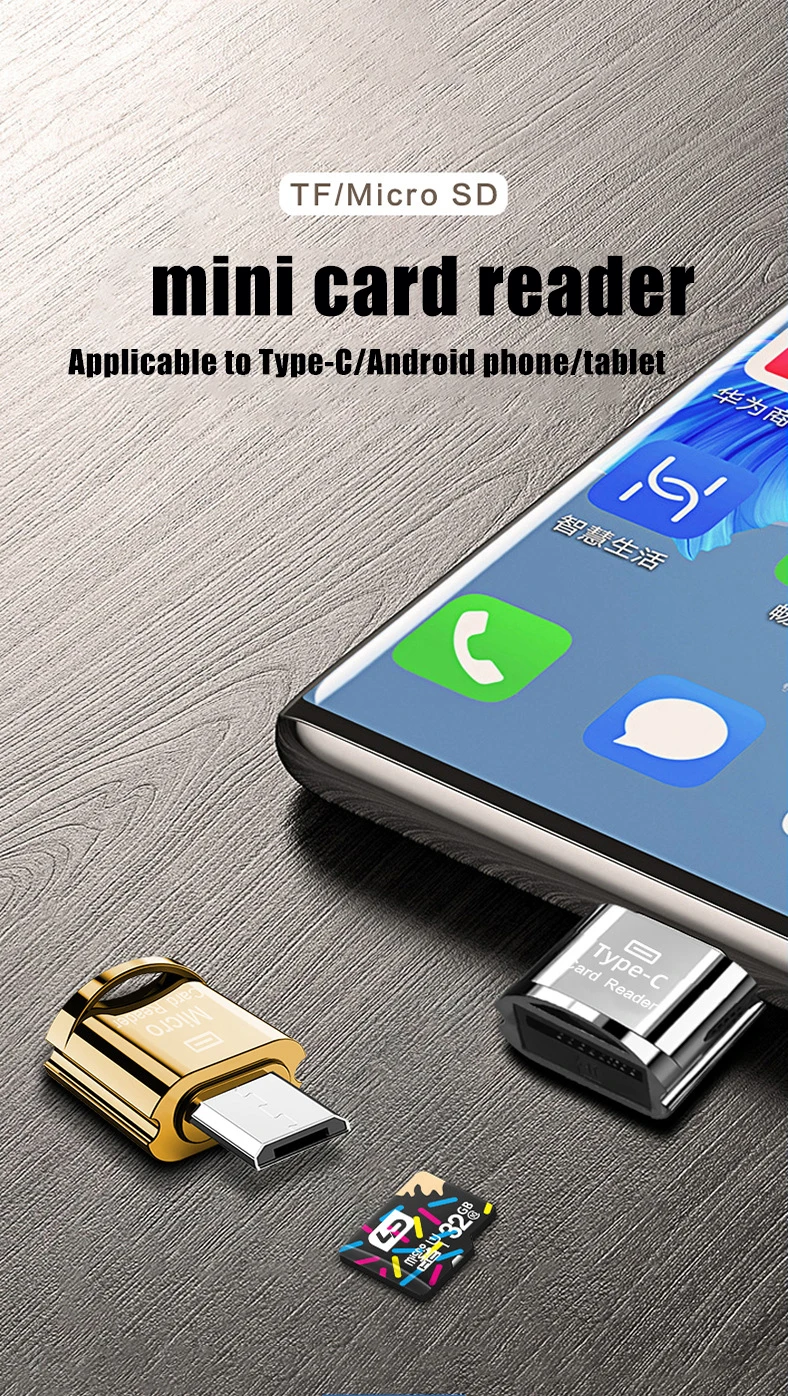 Особенности продукта:Дизайн устройства с интерфейсом Micro USB Type-C и Android, поддержка передачи данных, подключи и играй, быстрое считывание данных на карте памяти, может использоваться в качестве внешнего расширения для мобильных телефонов, храните больше данных, компактный корпус, металлический материал, прост в использовании.