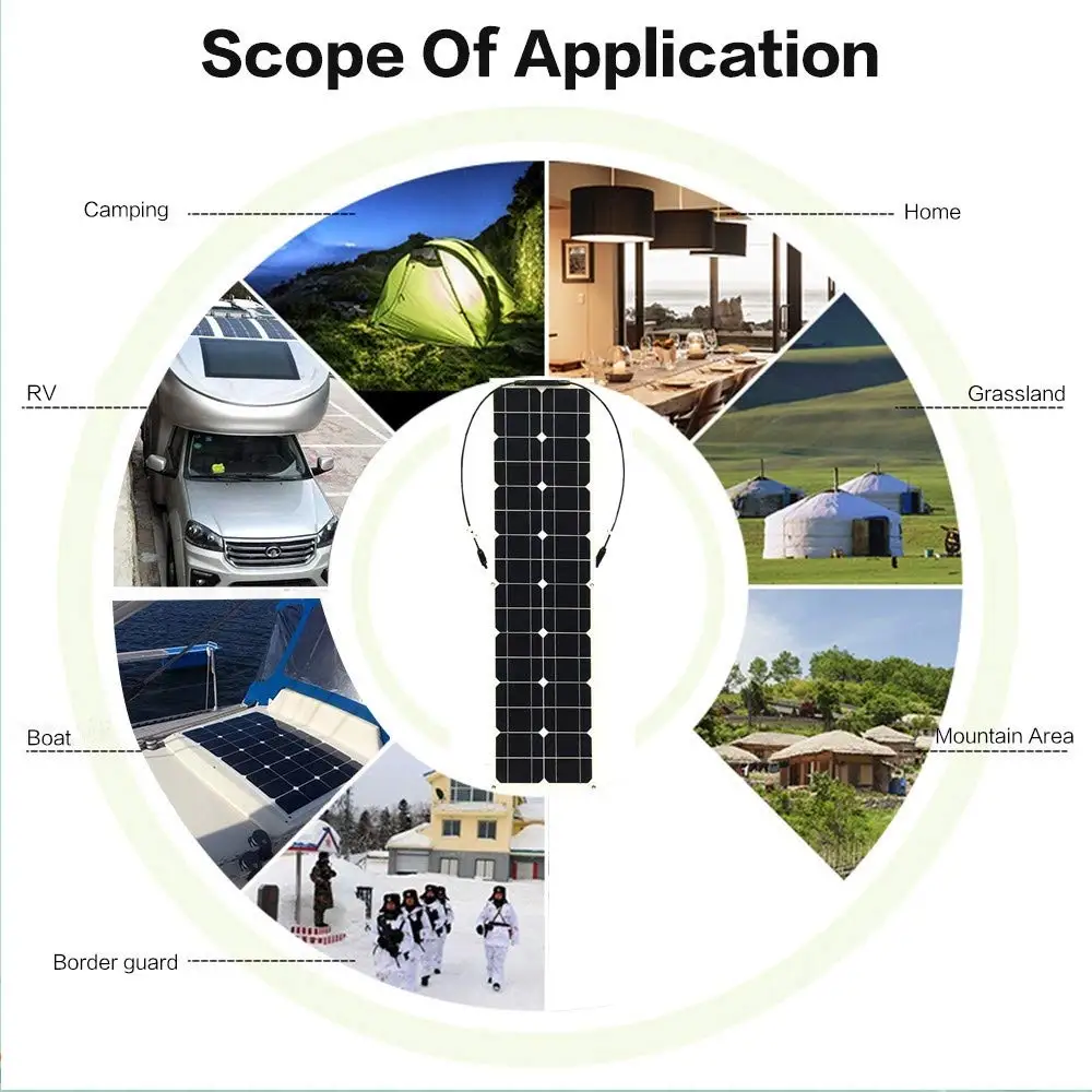 Solar Panel kit 50 watt Flexible Module Cell 100W 150W Photovoltaic Charge Controller For Car mobile home boat 12V batteries