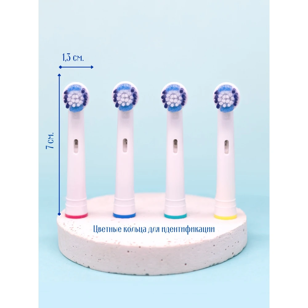 Комплектация | 4 насадки для зубной щетки и 4 цветных колечка для идентификации. |