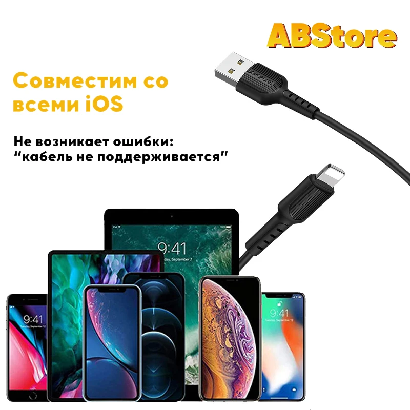 USB - Lightning кабель для Apple iPhone Borofone X16 черный.