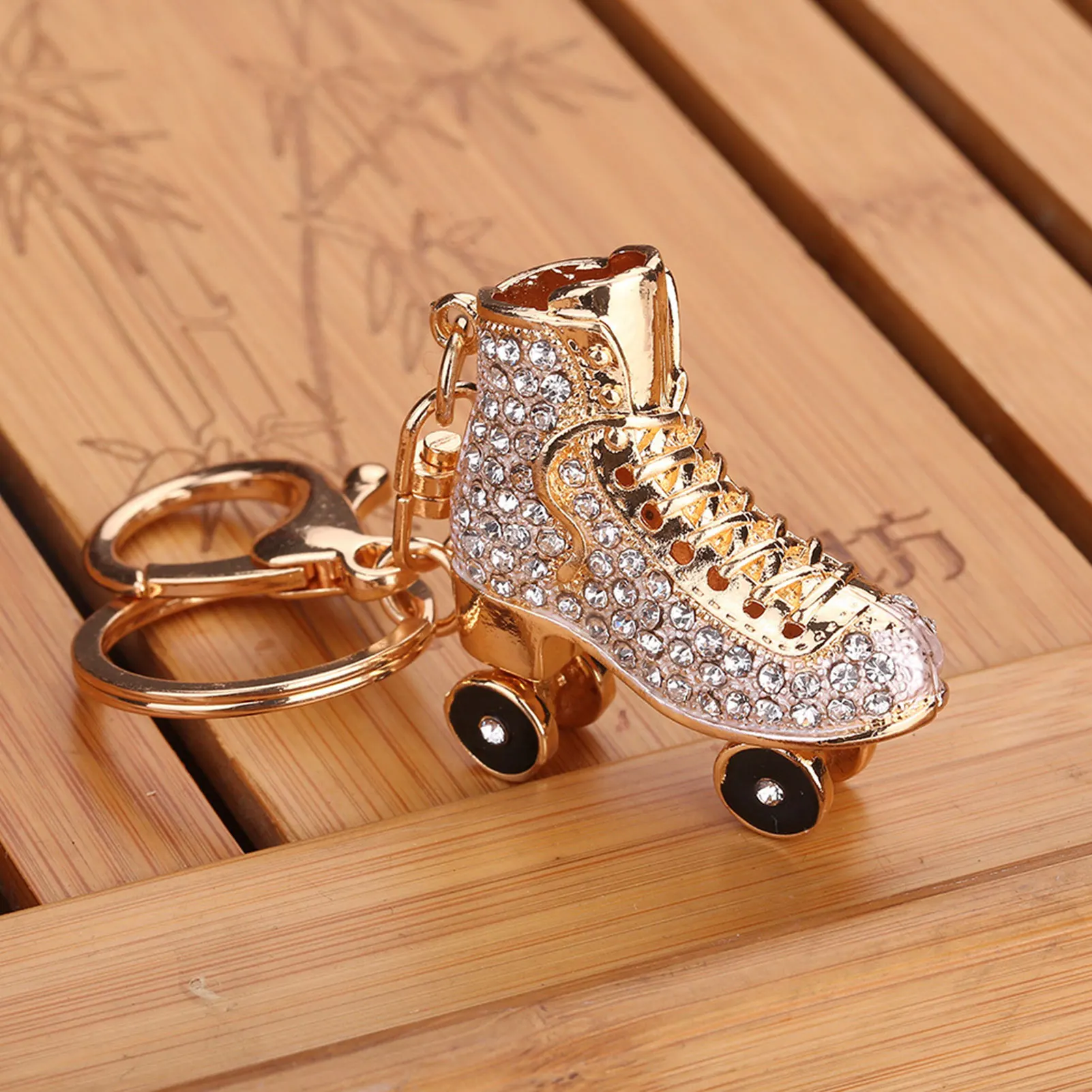 2. Блестящие и изысканные: Подвеска брелка-скейт, а также сверкающие стразы, которые являются стильными, сверкающими и утонченными. Утонченный вид делает его практичным и красивым, который подходит для женщин и девочек.